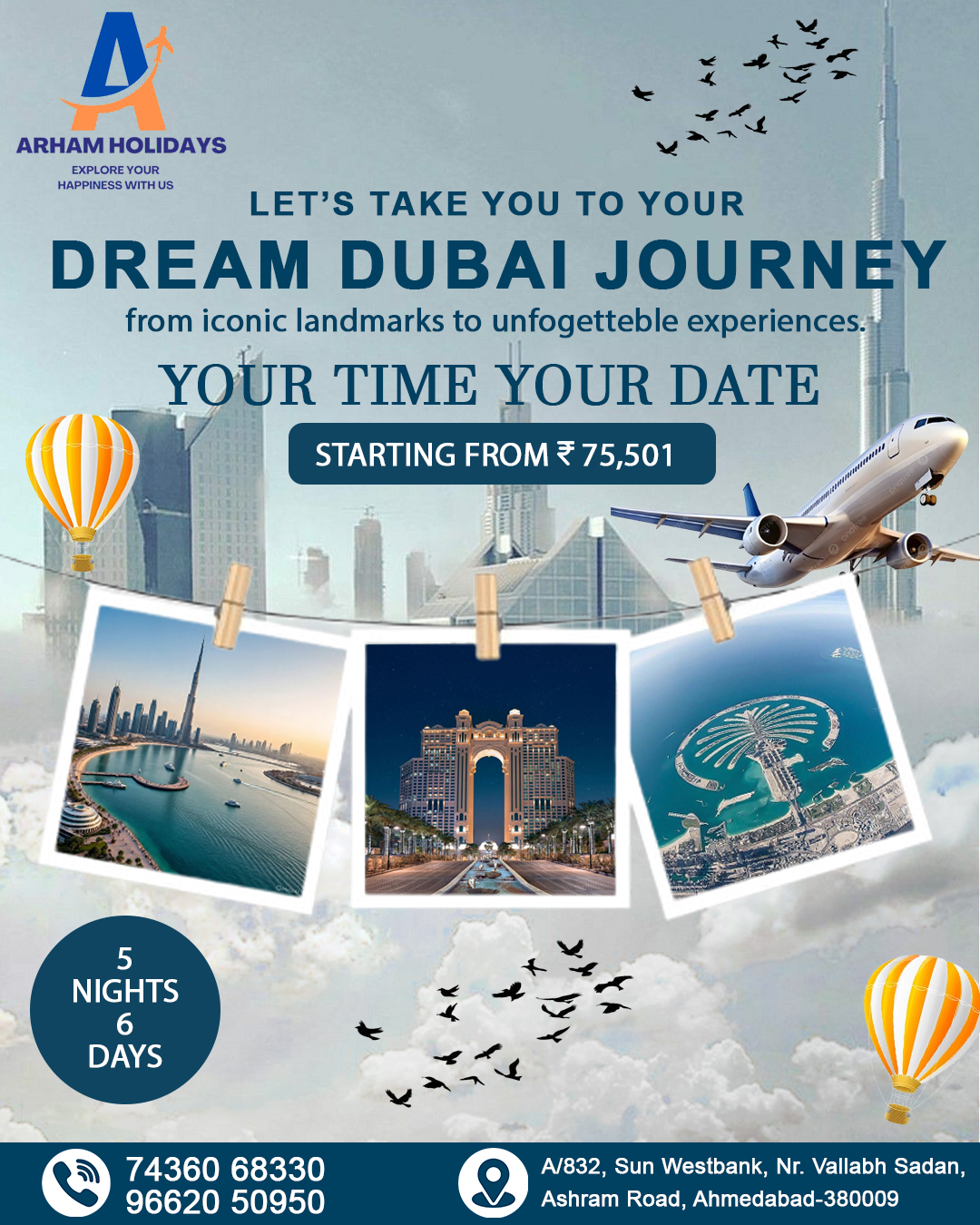 Explore PackagesWe are a trusted travel agency offering international and domestic travel services. From Dubai to Maldives, Europe to India – we plan hassle-free tours with the best pricing. Flight tickets, visas, hotels, transport – everything under one roof.